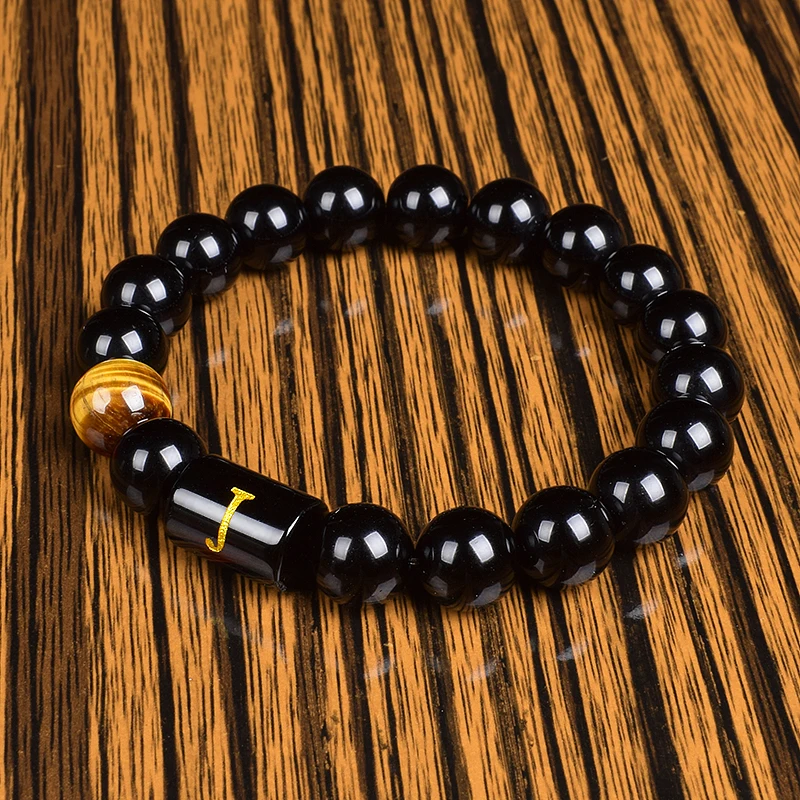 Elevate your style and spiritual well-being with our Black Onyx and Tiger Eye Beaded Bracelet with Initial, meticulously handcrafted with 10mm beads and measuring 21 cm in length. This striking bracelet combines the power of Black Onyx and Tiger Eye, offering double protection and a deep connection to ancient wisdom. You get to choose the initial on your personalized bracelet.